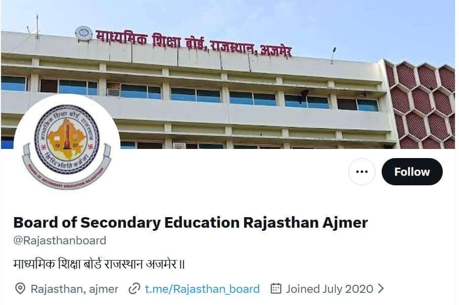 माध्यमिक शिक्षा बोर्ड राजस्थान का आधिकारिक एक्स हैंडल @Rajasthanboard है।
